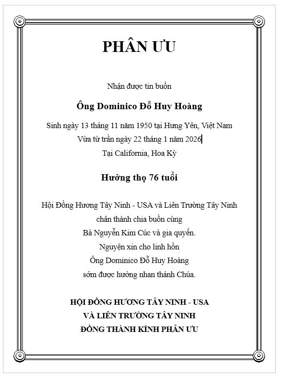Phân ưu (Ông Dominico Đỗ Huy Hoàng)